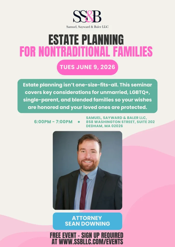 Estate planning is not one-size-fits-all. This seminar addresses the challenges and opportunities faced by nontraditional families, including unmarried couples, LGBTQ+ couples, single parents, and blended families. Learn how proper planning can ensure your wishes are honored and the people you care about are protected.